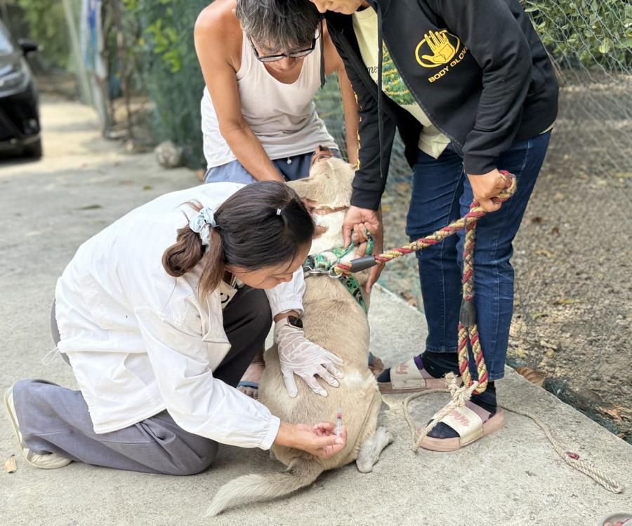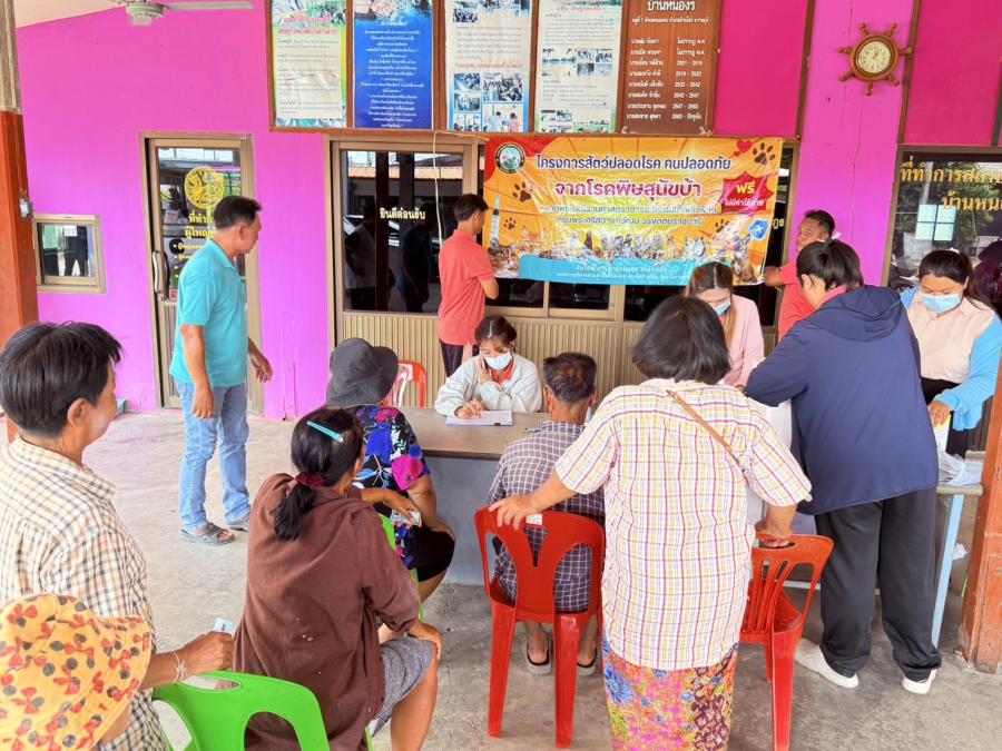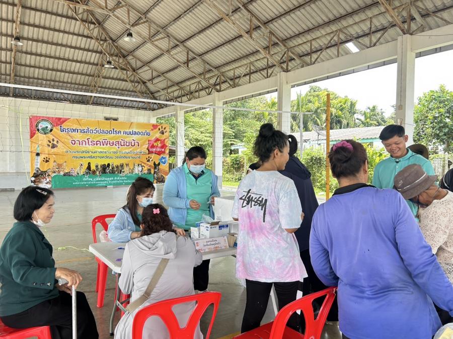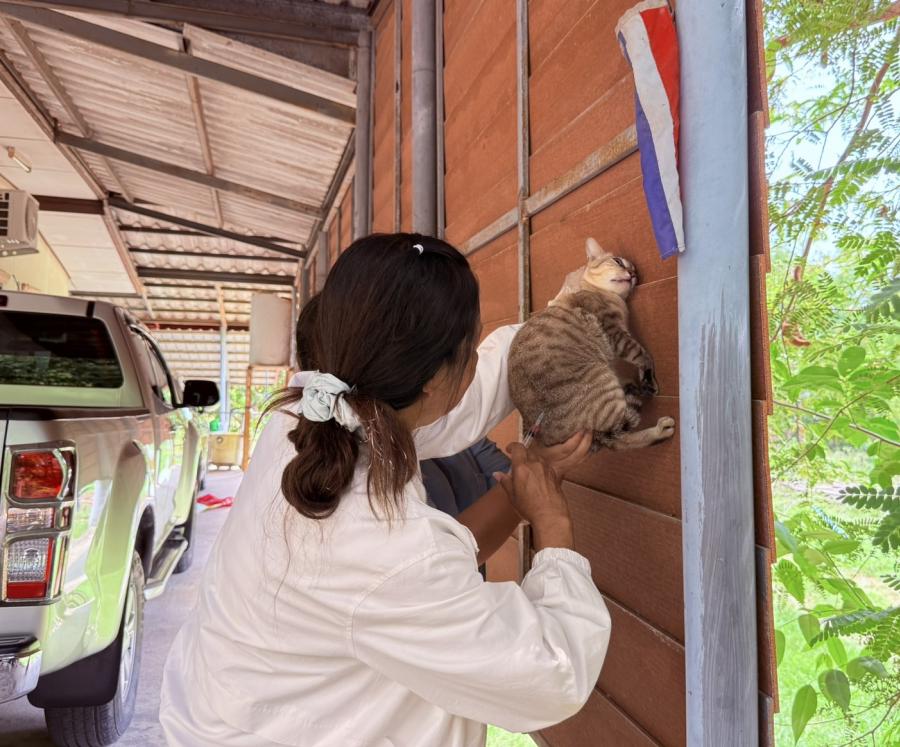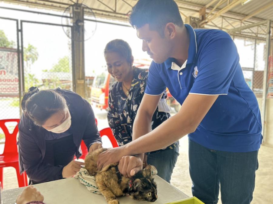 ดำเนินการฉีดวัคซีนป้องกันโรคพิษสุนัขบ้าให้กับสุนัขและแมวในชุมชนตำบลหนองกบ อำเภอบ้านโป่ง จังหวัดราชบุรี ทุกหมู่บ้าน