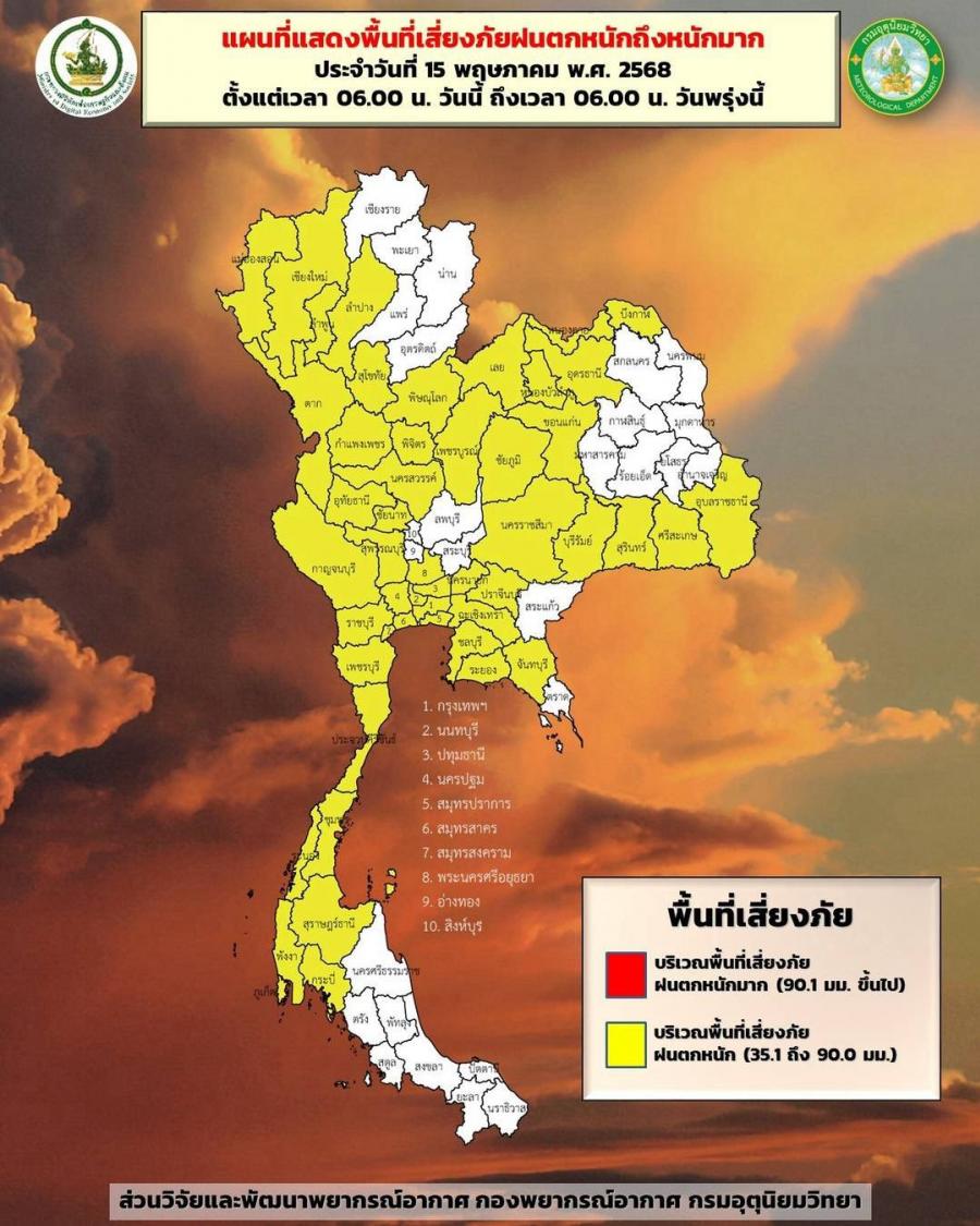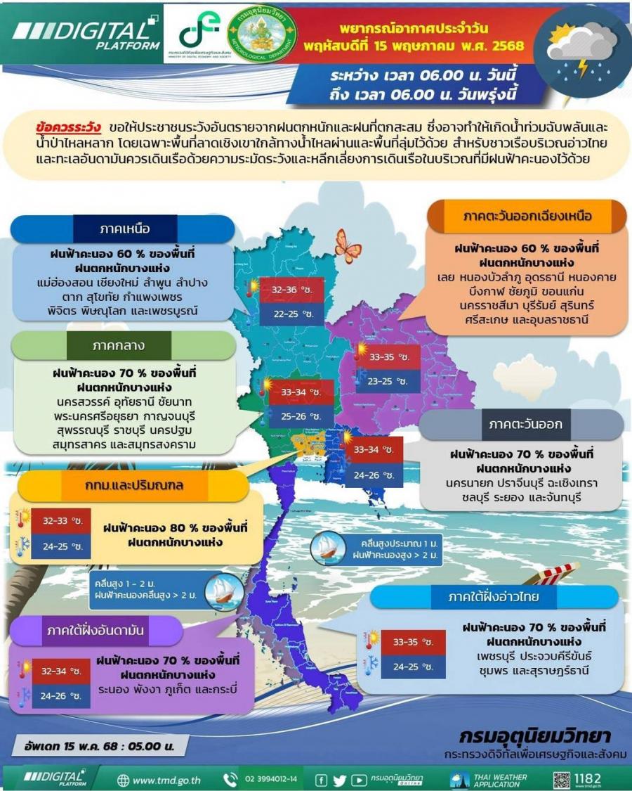พยากรณ์อากาศ 24 ชั่วโมงข้างหน้า (15 พ.ค. 68)