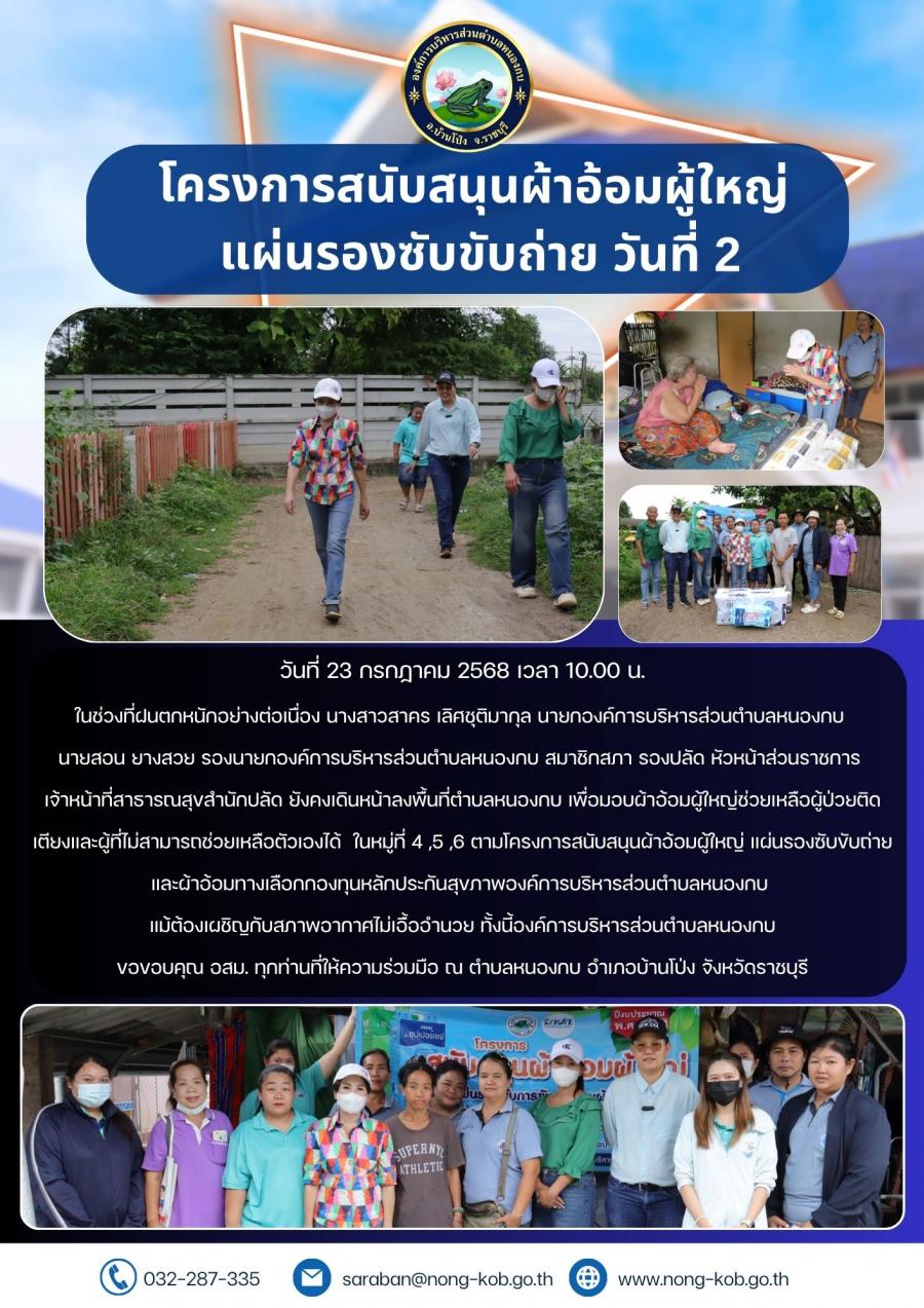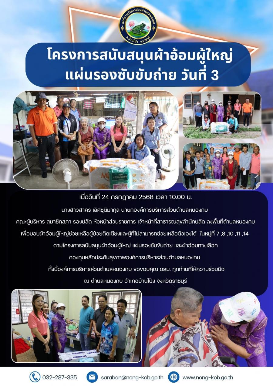 นางสาวสาคร เลิศชุติมากุล นายกองค์การบริหารส่วนตำบลหนองกบ นายสอน ยางสวย รองนายกองค์การบริหารส่วนตำบลหนองกบ สมาชิกสภา หัวหน้าส่วนราชการ เจ้าหน้าที่สาธารณสุขสำนักปลัด มอบผ้าอ้อมผู้ใหญ่นำไปใช้ในการดำรงชีวิตประจำวันเพื่อช่วยเหลือผู้ป่วยติดเตียงและผู้ที่ไม่สามารถช่วยเหลือตัวเองได้ ในหมู่ที่ 1 ,2 ,3 ,4,5,6,7,8,9,10,11,12 ,13,14,15 ตามโครงการสนับสนุนผ้าอ้อมผู้ใหญ่ แผ่นรองซับขับถ่าย และผ้าอ้อมทางเลือกกองทุนหลักประกันสุขภาพองค์การบริหารส่วนตำบลหนองกบ ทั้งนี้องค์การบริหารส่วนตำบลหนองกบขอขอบคุณ อสม. ทุกท่านที่ให้ความร่วมมือ ณ ตำบลหนองกบ อำเภอบ้านโป่ง จังหวัดราชบุรี