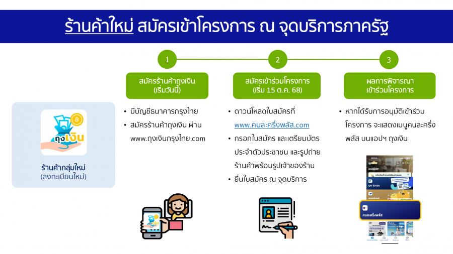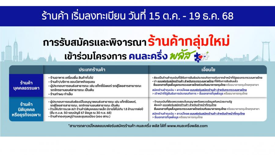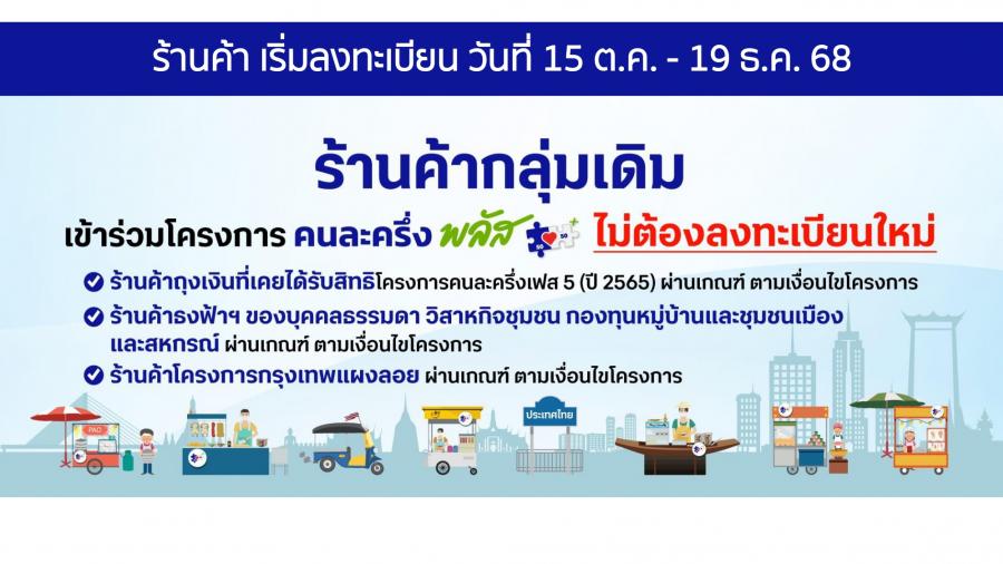 ที่มีคุณสมบัติตรงตามหลักเกณฑ์และเงื่อนไขที่กระทรวงการคลังกำหนดเข้าร่วมโครงการ “คนละครึ่งพลัส” เพื่อร่วมเป็นส่วนหนึ่งในการ กระตุ้นเศรษฐกิจชุมชน และเพิ่มยอดขายให้ร้านค้าท้องถิ่น
