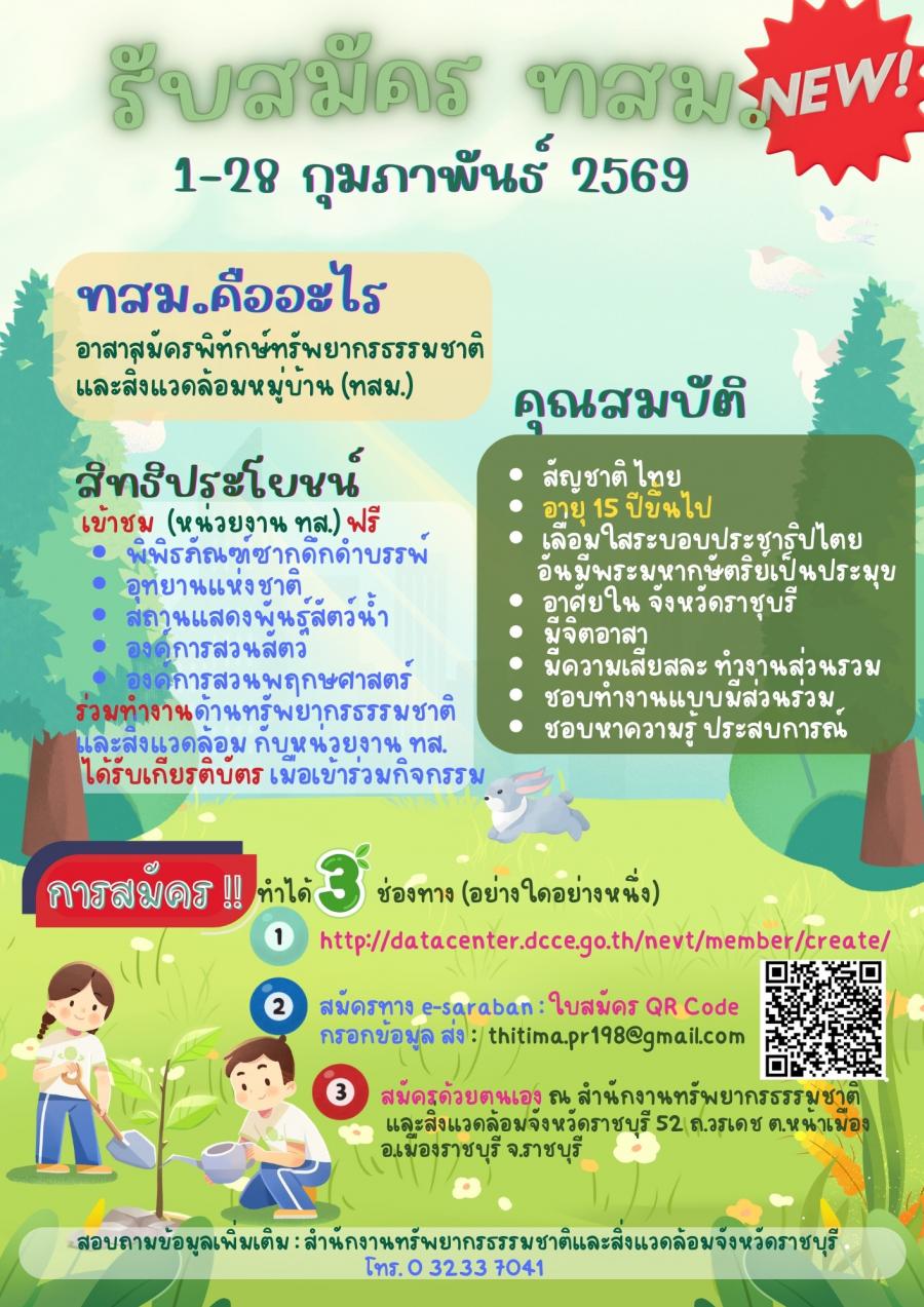 องค์การบริหารส่วนตำบลหนองกบ ประกาศรับสมัคร อาสาสมัครพิทักษ์ทรัพยากรธรรมชาติและสิ่งแวดล้อมหมู่บ้าน (ทสม.) ตั้งแต่ วันที่ 1 – 28 กุมภาพันธ์ 2569 เพื่อเปิดโอกาสให้ประชาชนในพื้นที่เข้ามามีส่วนร่วมในการดูแลทรัพยากรธรรมชาติและสิ่งแวดล้อมของชุมชนเราอย่างยั่งยืน