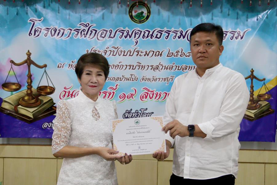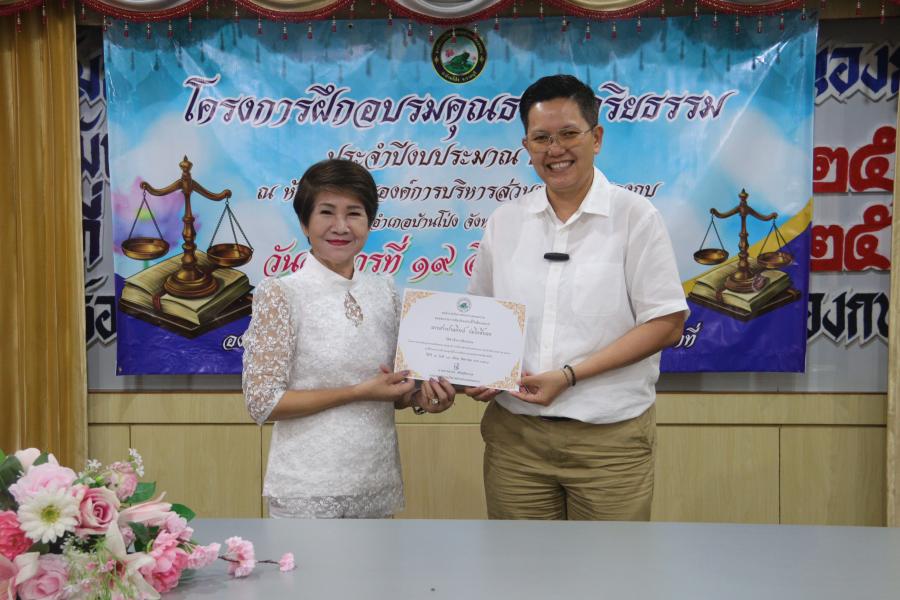 นางสาวสาคร เลิศชุติมากุล นายกองค์การบริหารส่วนตำบลหนองกบ ประธานพิธีโครงการฝึกอบรมคุณธรรมและจริยธรรม ประจำปีงบประมาณ 2568 โดยมี คณะผู้บริหาร สมาชิกสภา รองปลัด หัวหน้าส่วนราชการ ราชการและพนักงาน อบต.หนองกบ ร่วมกิจกรรม โดยได้รับเกียรติจาก นางสาวปวริศา วิทิศวรการ เจ้าพนักงานป้องกันการทุจริตชำนาญการ หัวหน้ากลุ่มป้องกันการทุจริตสำนักงาน ป.ป.ช. มาเป็นวิทยากรบรรยายให้ความรู้แก่ผู้เข้าร่วมอบรม เพื่อเสริมสร้างความเข้าใจด้านคุณธรรม จริยธรรม และการนำไปประยุกต์ใช้ในการปฏิบัติงานอย่างมีประสิทธิภาพเพื่อมุ่งสู่การทำงานอย่างโปร่งใสและยึดหลักธรรมาภิบาล ณ ห้องประชุมสภาชั้น 2 อบต.หนองกบ อำเภอบ้านโป่ง จังหวัดราชบุรร