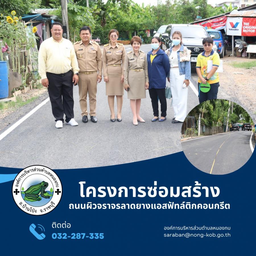 สำรวจตรวจดูถนนในโครงการปรับปรุงถนนลาดยางแอสฟัลท์ติกคอนกรีต บริเวณหมู่ที่ 5 หนองแก หนองประดุก ตำบลหนองกบ อำเภอบ้านโป่ง จังหวัดราชบุรี