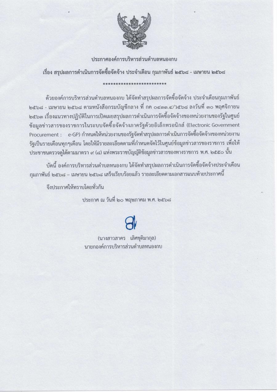 สรุปผลสขร.1การจัดซื้อจัดจ้างประจำเดือนกุมภาพันธ์ พ.ศ. 2568- เดือนเมษายน พ.ศ. 2568 (ไตรมาศที่ 2)